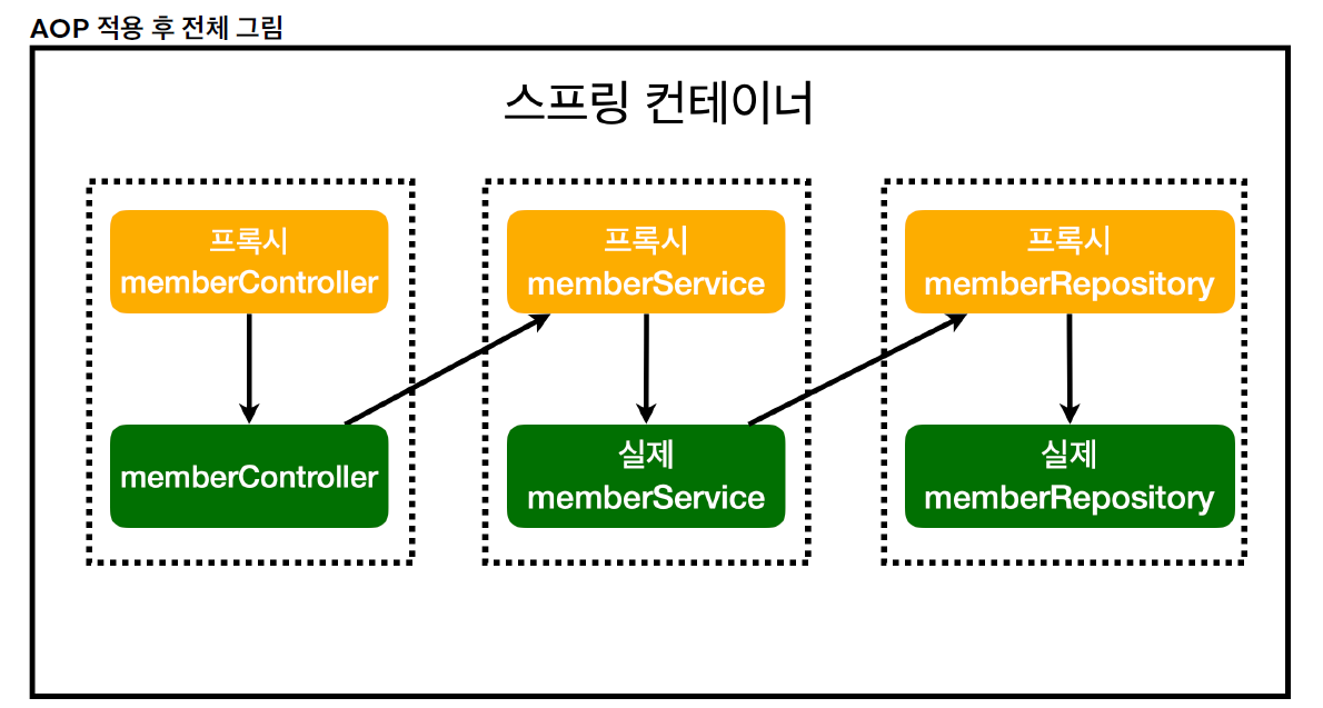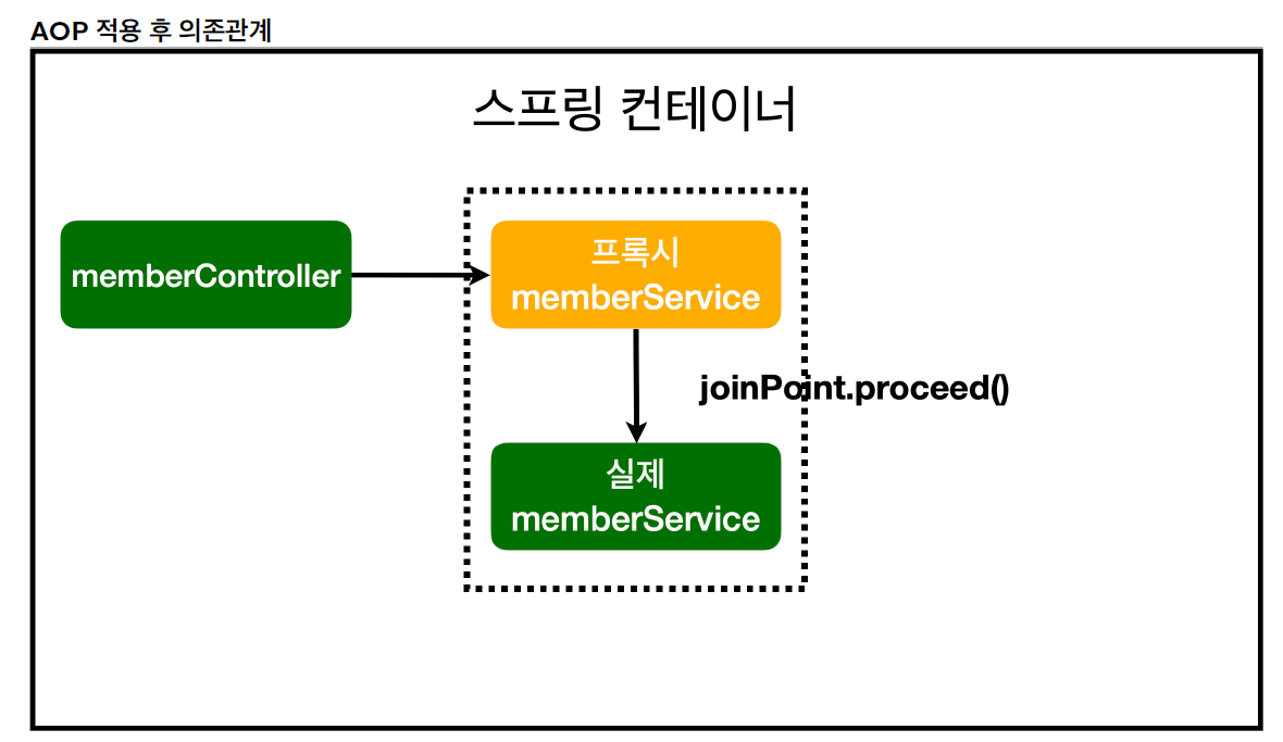 가짜 memberService 만든다 joinPoint.proceed() 후 진짜로 간다