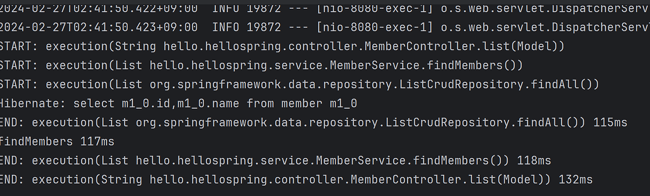 System.out.println("END: " + joinPoint.toString()+ " " + timeMs + "ms");