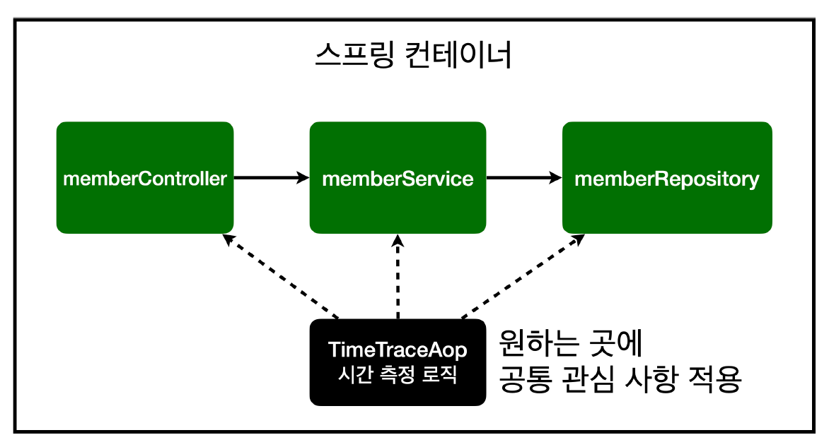 회원가입, 회원 조회등 핵심 관심사항과 시간을 측정하는 공통 관심 사항을 분리한다.