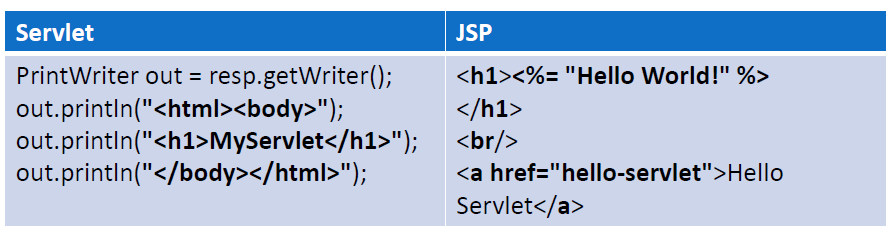 Servlet이나 JSP모두 동적으로 데이터를 생성해서 전송하는 것은 동일하지만 구현 방식은 다르다.