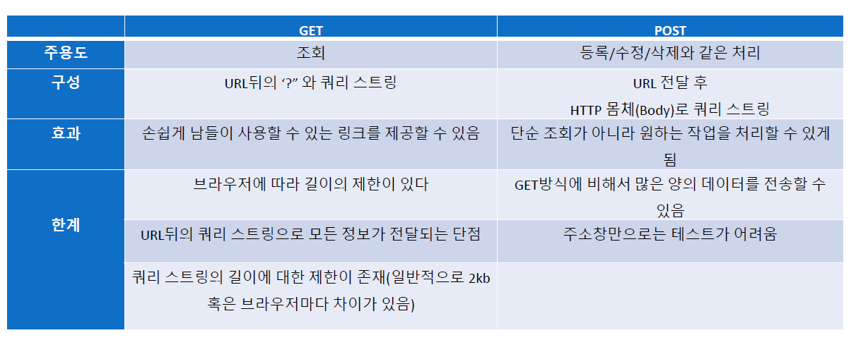 브라우저에서 자신이 원하는 정보를 전달하기 위해 두가지 방식을 이용한다.