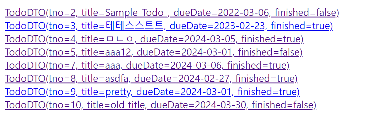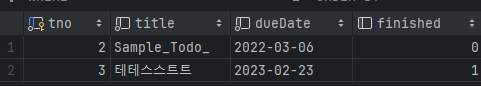 TodoDTO dto = TodoDTO.builder().tno(8l).title("테테스스트트").dueDate(LocalDate.of(2023,02,23)).finished(true).build();