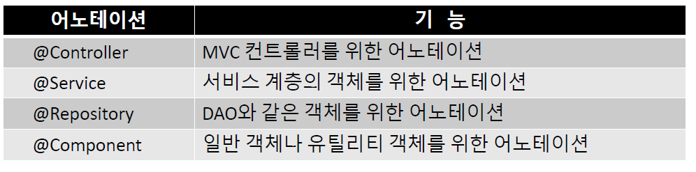 특정 어노테이션을 이용해서 스프링의 빈으로 관리될 객체를 표시