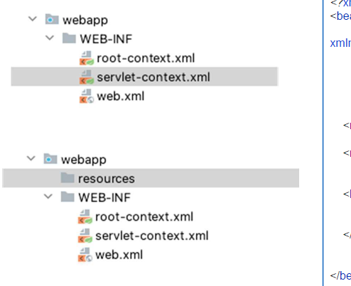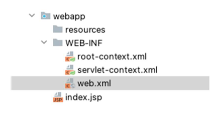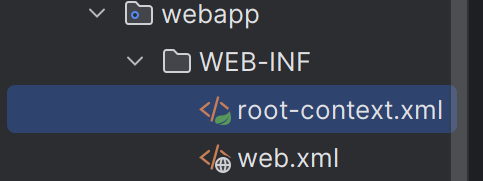 WEB-INF 밑에 root-context.xml : 현재 프로젝트를 인텔리제이에서 스프링 프레임워크로 인식하고 필요한 기능을 지원하기 위한 설정