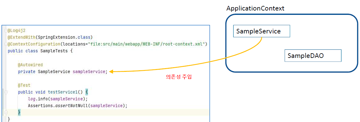 // sampleService 멤버변수로 만들고 @Autowitred 존재하면 여기 주입해줘