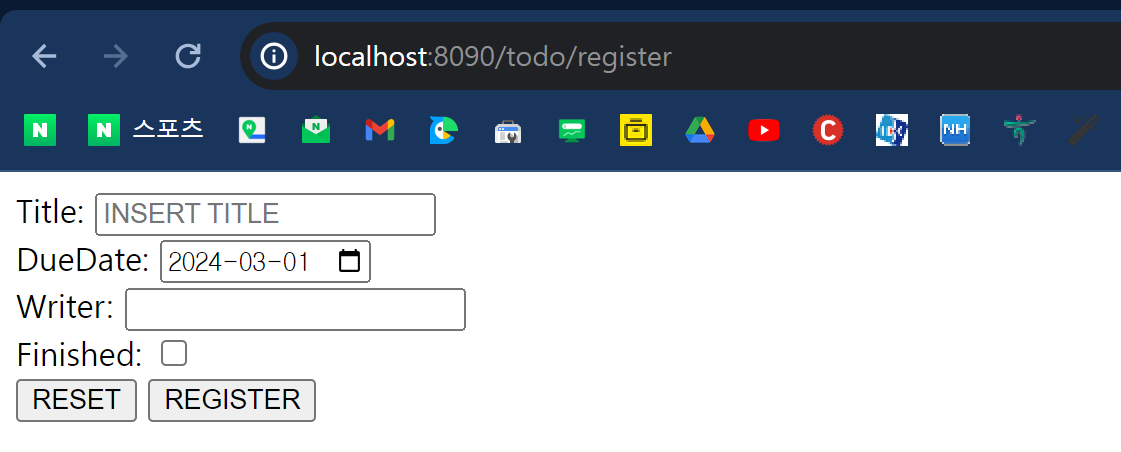 /todo/ex2 로 접속, 전달값 없이 하니까 디폴트값 나옴