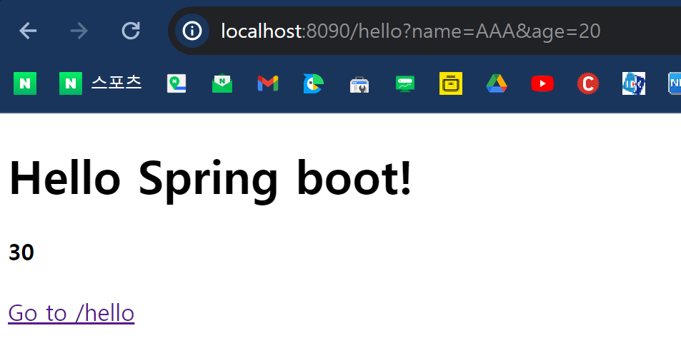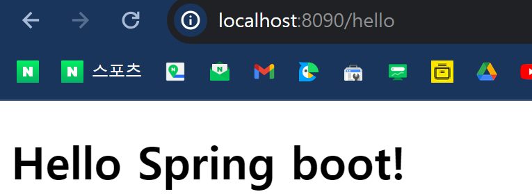 - 컨트롤러를 정의한 후 사용자가 localhost:8080/hello 페이지를 요청