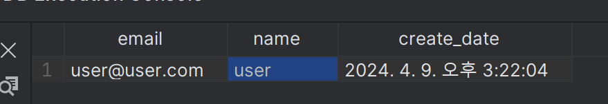 User user = new User("user1@user.com", "user", LocalDateTime.now());