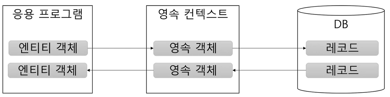 - 영속성 컨텍스트 정의 : orm에서 테이블 참조하기 전 중간에서 잠시 들고 있는 곳 똑같은쿼리 백번한다 했을 때 , 결과 값 캐시로 들고있다가 재활용