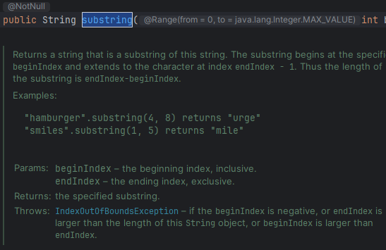 inteliJ에서 메소드 위에 마우스 갖다 대면 정보볼 수 있다.